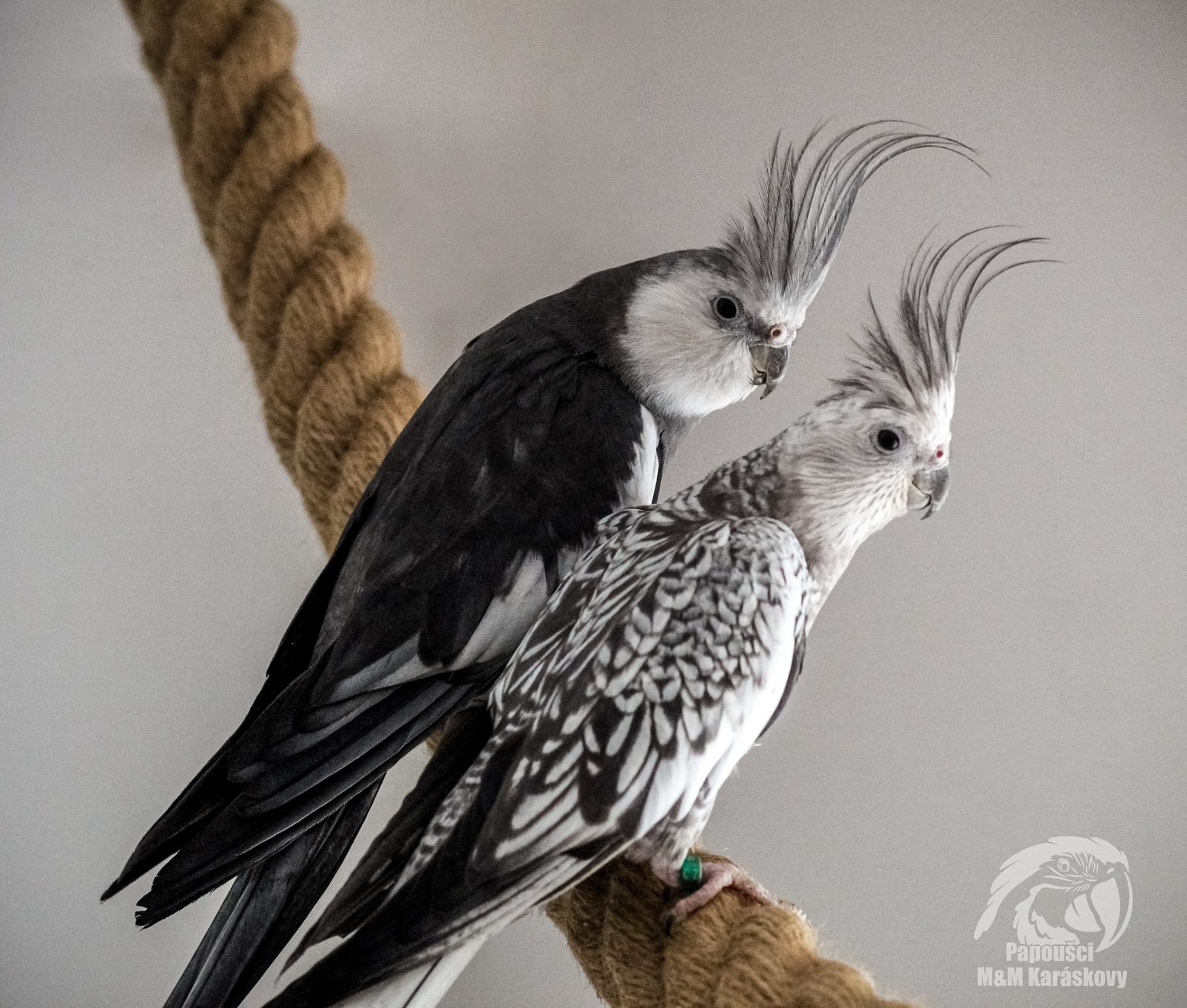Jednu samičku klasické perlové korely chocholaté už jsme si přivezli ze 450 km vzdáleného Frýdku-Místku v zimě. Byla volná k odběru a měla krásné perly, stejně tak krásné, jako jsem si zamilovala u páru na horní fotografii. Takže i když jsem si pohrávala s myšlenkou další rezervaci z daleka zrušit, protože ty perličky už jsem měla doma, skákala jsem radostí, když mi děvčata za rok od zamluvení napsaly, že se potvrdila samička a přišla na nás řada! Když se čekalo na výsledky testů, které mimochodem musely chovatelky posílat dvakrát, kvůli nějaké chybě, snažila jsem se na nové mládě neupínat. Ale tak jsem se těšila, že se mi zdál sen, kde mi oznamovaly, že je to opravdu samička a daly jí jméno TOE. Tyto chovatelky svá mláďata nepojmenovávají a nechávají vybrat jméno až budoucí chovatele. Takže když mi oznamovaly, a že mě holky hodně napínaly! Byla to prostě "Malá Toe"!