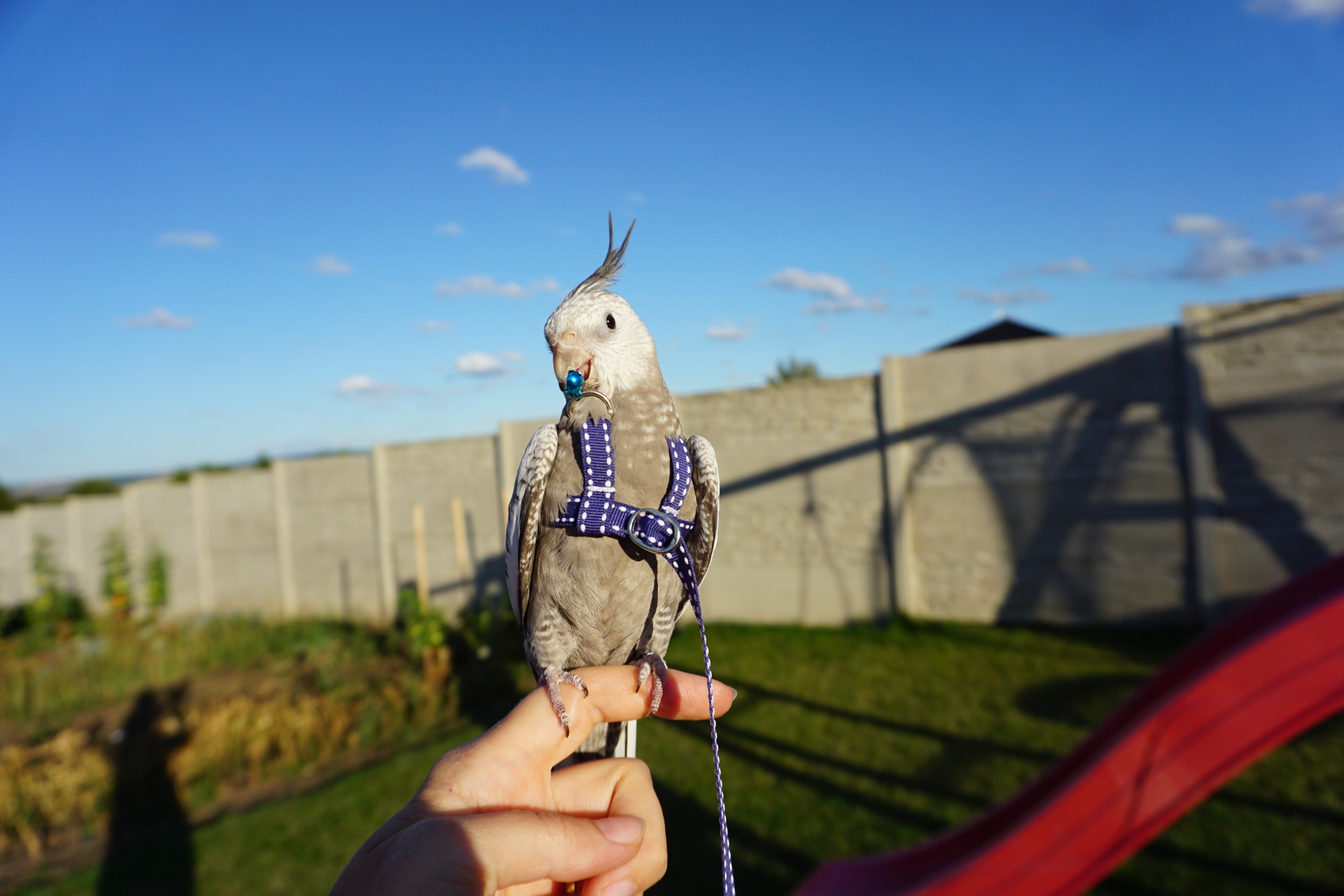 Beky nosí kšíry celkem ráda. Nasazování není až taková hitparáda, ale když už je má na sobě, nosí hrdě svou chocholku nahoru a užívá si to, že může být venku.