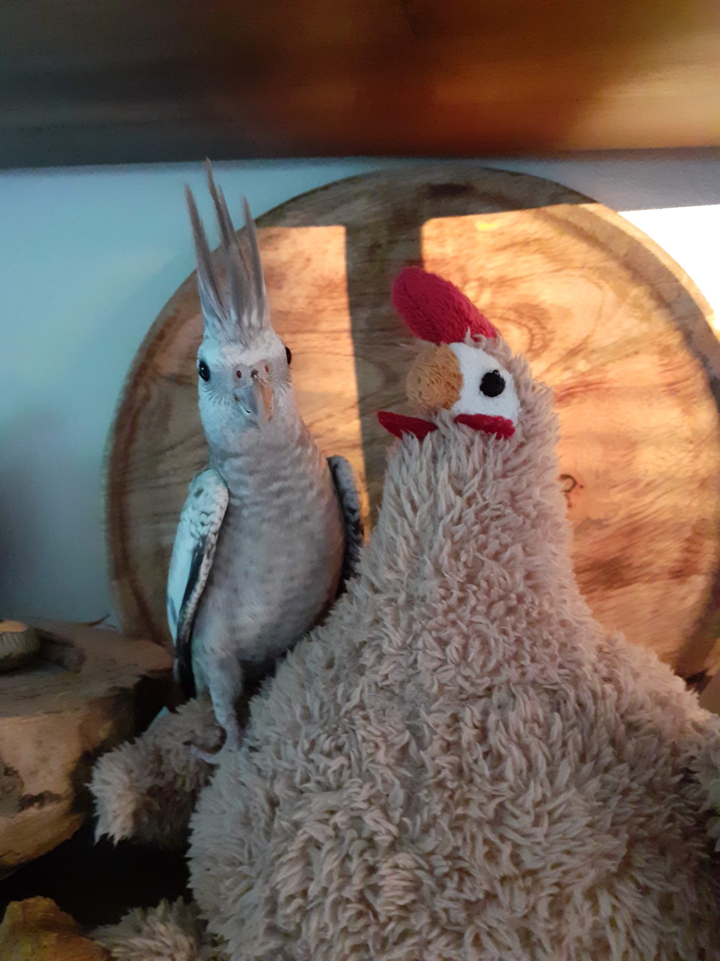 Jako fotku matky jsme obdrželi fotku nějakého mláděte, už se nám nepovedlo od chovatelky získat jinou, tak necháváme tuto. Prcek se u nás velmi brzy zabydlel. Na hlavě měl takovou "korunku", hned z počátku se mu zalíbila naše slepice Kadla. :-)